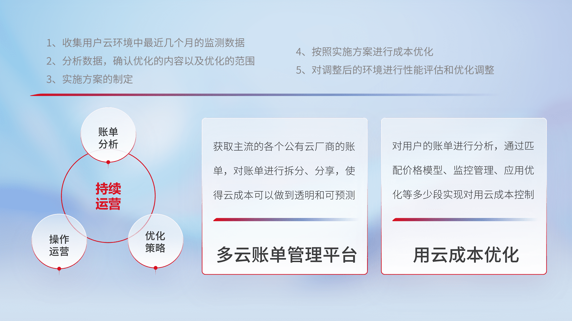 运用智能化工具分析云资源,,,,提供日常费用可视化工具,,自动账单拆分,,,成本优化云上费用,,,,降本增效。。