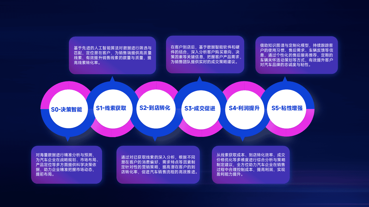 通过拓宽潜在客户来源、、、优化线索分配并提高到店转化率,,,,以增强销售效率。。。。同时,,利用线索数据不断优化分析模型,,有效提升转化率,,扩大营销影响力。。。